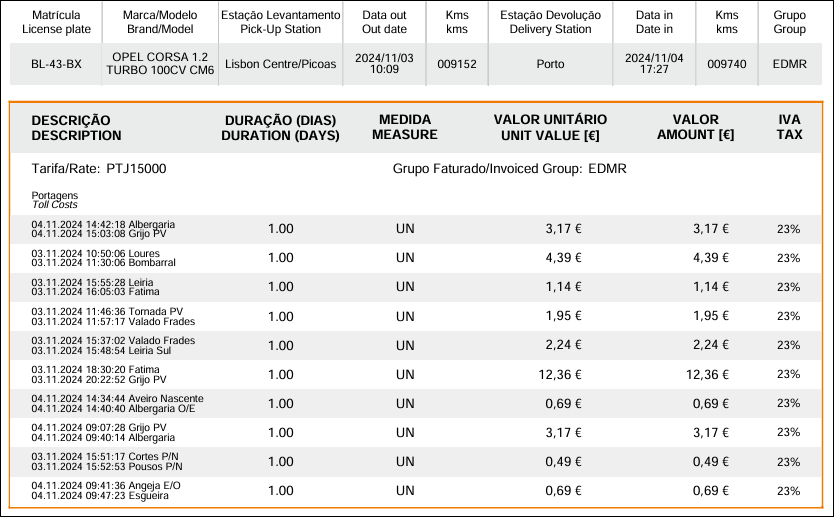 4. 톨게이트 이용료는 약 3주 정도 후 렌트 시 남긴 신용카드번호로 승인된다. 포르투갈 렌터카는 e-toll 이라는, 우리나라로 치자면 하이패스단말기 같은 것이 달려 있고, 고속도로 상 초록색 네모 안에 V 표시가 그려진 차선으로 통과하면 된다.