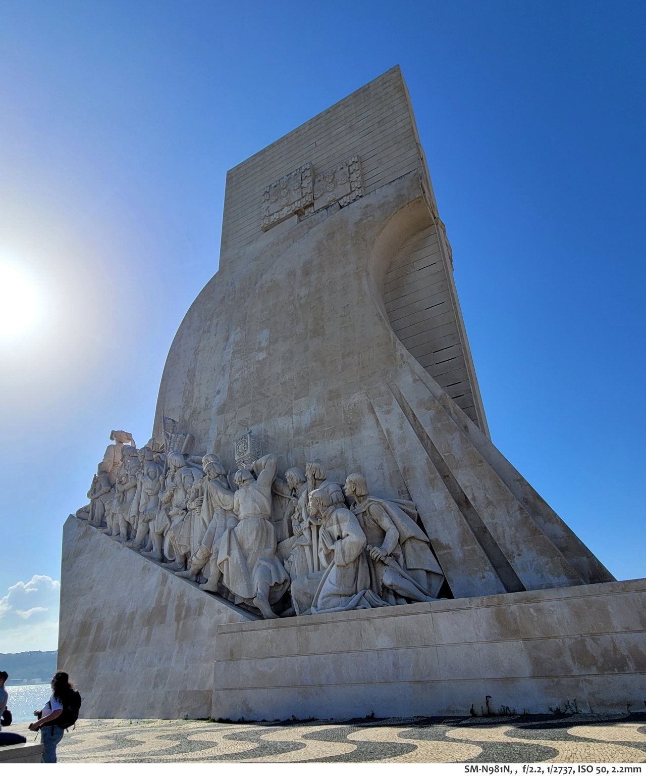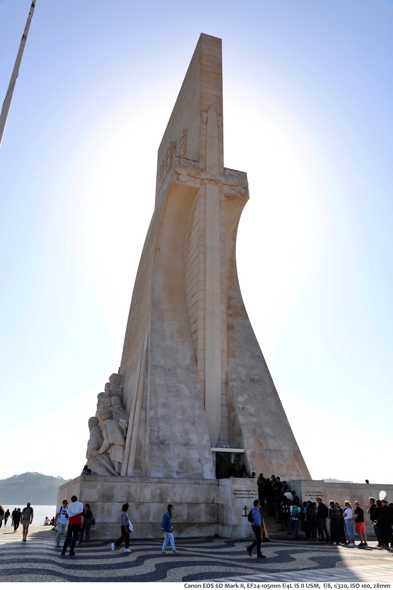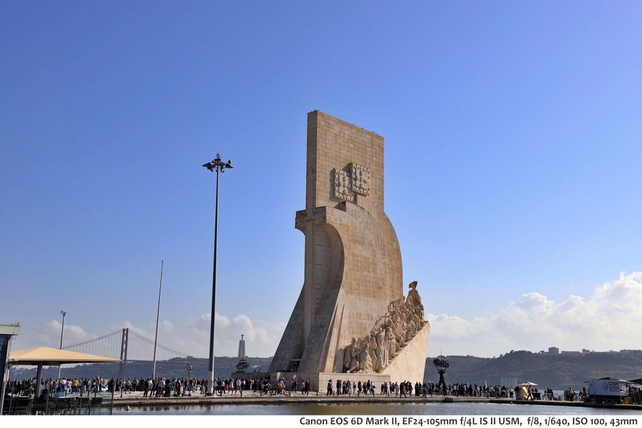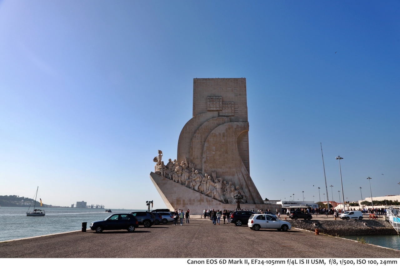 높이 52m, 너비 46m, 폭 20m의 기념비로 과거 14세기 무렵 포르투갈의 대항해 시대를 기리기 위해 1960년에 준공한 기념비라고 한다. 기념비의 모양은 옛날 대서양을 항해했던 범선 모양이라고 하며, 기념비를 둘러 포르투갈의 여러 위인들의 모습이 조각되어 있다. 기념비 앞마당에는 대형 나침반 문양 바닥으로 꾸며져 있다. 나침반 가운데 쪽에는 세계 전도 문양이 있는데 한반도도 있다고 한다.
