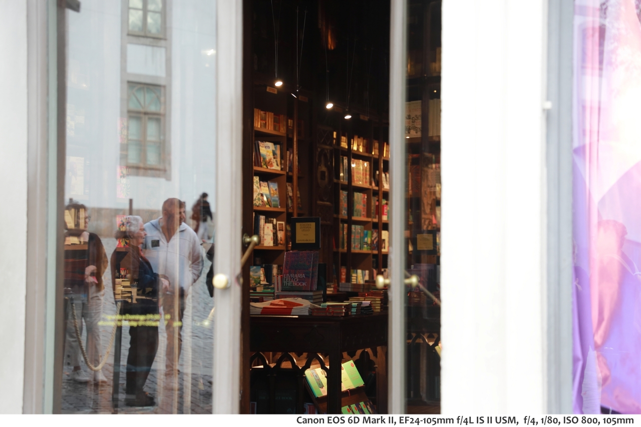 서점 쇼윈도 안의 카메라가 나를 비추고, 그 안의 모니터에 사진찍는 나를 띄우고 있다.