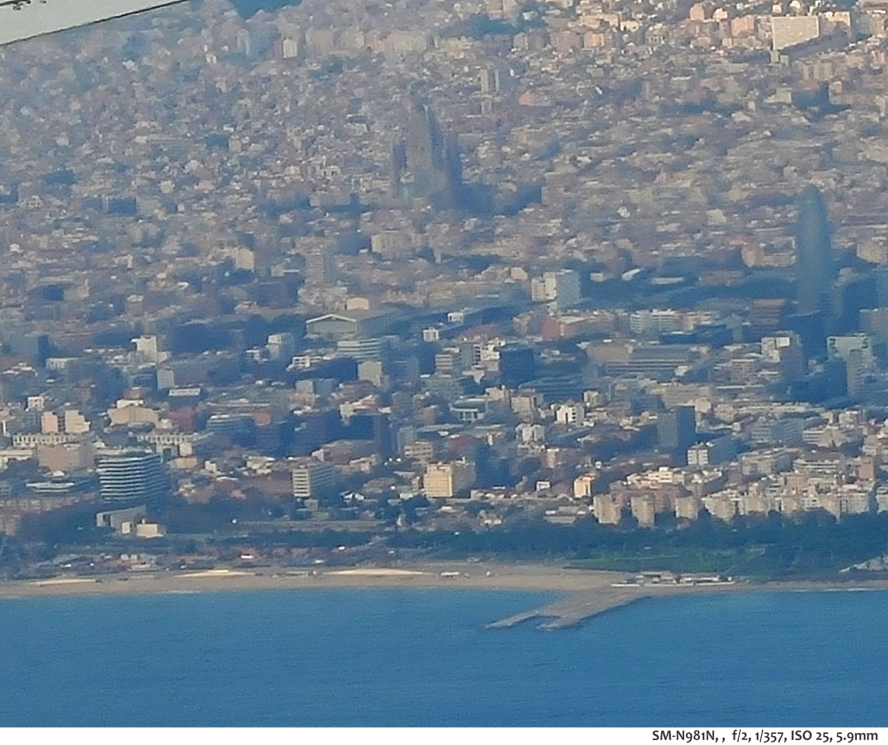 스페인 바르셀로나 착륙 직전. 사그라다 파밀리아 성당이 보인다.