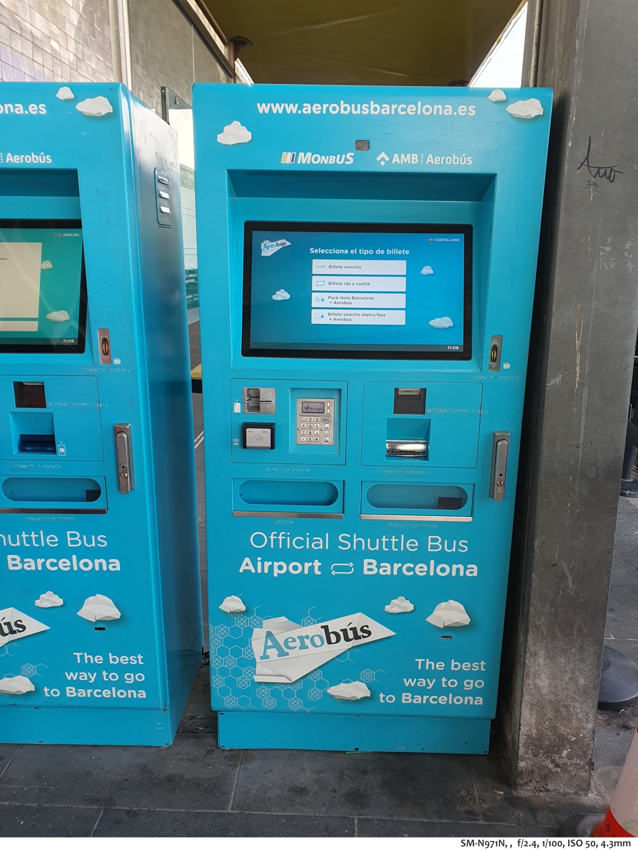 B동 앞에 카탈루냐 광장으로 가는 공항버스 정류소가 있다.